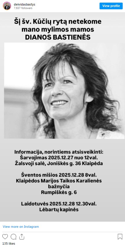 „Šį šv. Kūčių rytą netekome mano mylimos mamos Dianos Bastienės.