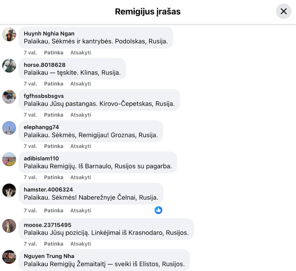 Į tokius, panašu, botų rašytus komentarus, sureagavo ir lietuviai. Dalis jų pažymėjo, kad sulaukus neva tokio didelio palaikymo iš Rusijos, ten ir reikėtų siekti politikos aukštumų.